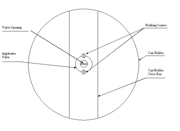 When replacing the spray valve in your paint applicator, ensure the valve is positioned as shown below, with the valve opening horizontal to the can holder cross bar.